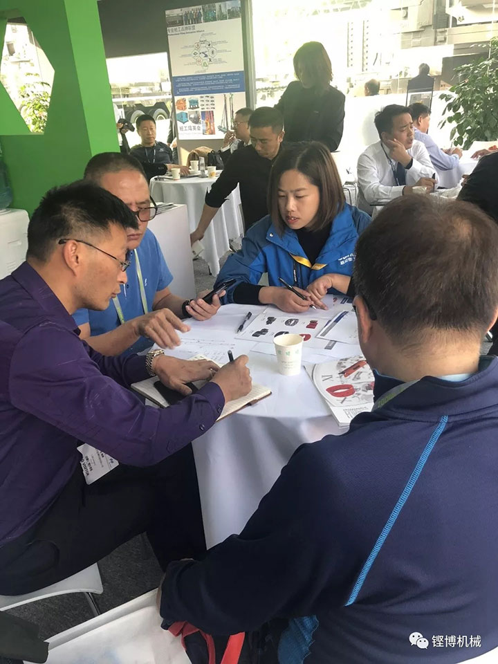 Figure 1: Panorama of Zibo Machinery Exhibition Figure 2: In-house communication with customers in the reception room Figure 3: On-site presentation to customers, communication with customers