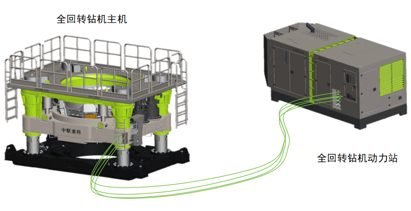 全回轉(zhuǎn)鉆機包括動力站及工作裝置,工作裝置的動力來源于動力站。