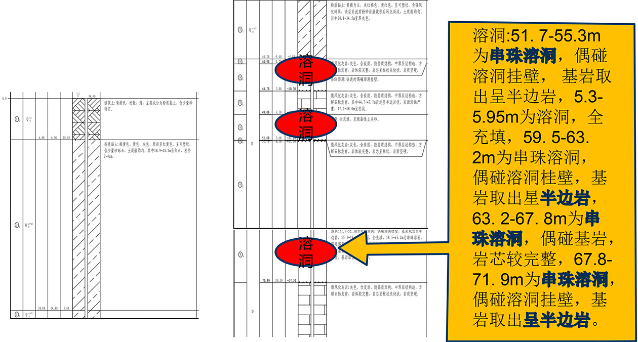 ♦ 采用一次性套管工藝,解決溶洞中砼滲漏問題;