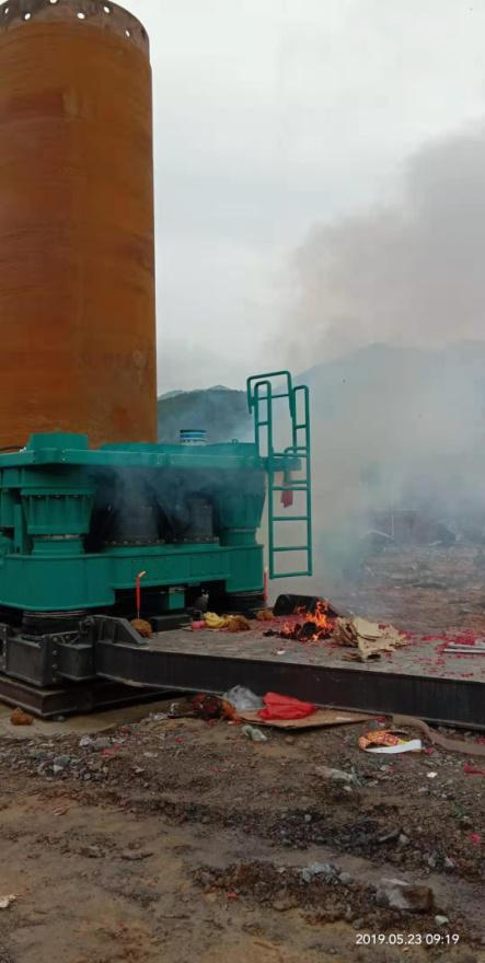 4、在驅(qū)動套管鉆進過程中,如果遇到套管鉆進困難,就需要用沖擊錘與沖擊抓斗或旋挖鉆頭進入到套管中間取土。
