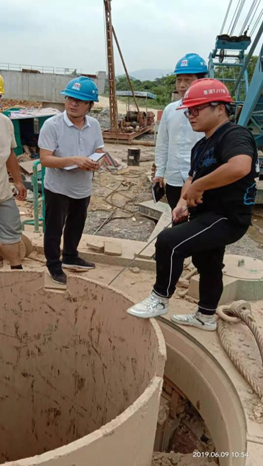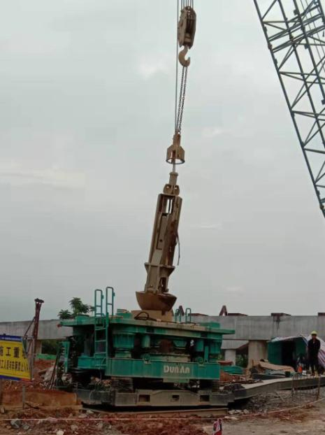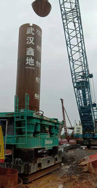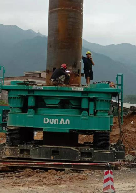 3、定好樁位以后,用全回轉(zhuǎn)鉆機驅(qū)動套管進行鉆進施工。在鉆進一根套管后,可用吊車吊起另一根套管,與鉆入地下的套管連接,然后繼續(xù)鉆進施工。