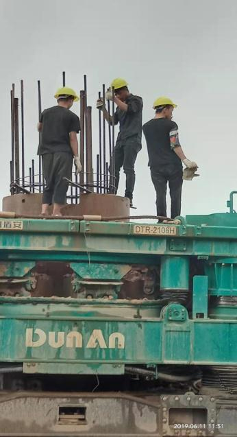 7、下放鋼筋籠,灌注混凝土。將鋼筋籠放入套管中間,然后放入灌漿導管。此時開始灌混凝土。整個樁孔灌混凝土時間盡量短,如果灌注時間太長,混凝土凝固后會造成拔套管困難,引起施工事故。在灌混凝土過程中,可以起拔套管一段高度,防止混凝土凝固后,將套管粘住。